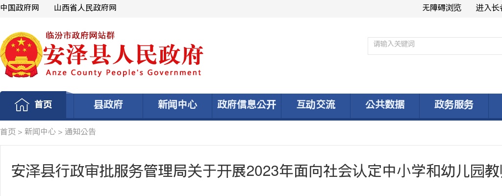 原标题:安泽县行政审批服务管理局关于开展2023年面向社会认定中小学和幼儿园教师资格工作的通知