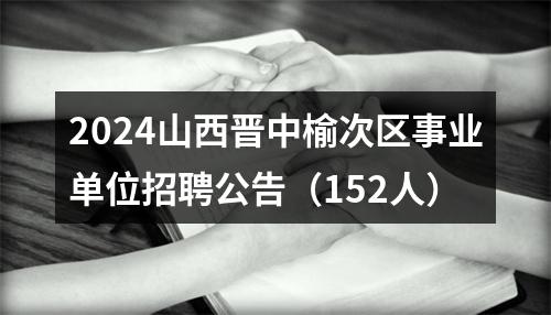 为进一步加强事业单位工作人员队伍建设,根据《事业单位人事管理条例》和我省《关于进一步改进和加强事业单位公开招聘工作的意见》(晋人社厅发〔2017〕35号)、《关于做好2024年全省事业单位公开招聘工作的通知》(晋人社厅发〔2023〕88号)等政策规定和要求,结合市委组织部、市人社厅下达的2024年度事业单位公开招聘计划,榆次区决定公开招聘事业单位工作人员152人,现将有关事项公告如下: